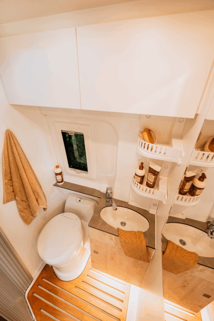 Der Runner verfügt gemeinsam mit dem Celebration sowie dem Vario Kids über das größte Bad bei Clever. Wer gerne öfters in seinem Fahrzeug duscht hat hier die Möglichkeit, sich ein Schwenkbad einbauen zu lassen, wodurch Sie einen Duschkomfort erhalten, der fast einer haushaltsüblichen Dusche gleicht. Der zweigeteilte Oberschrank sorgt für Ordnung und kleinere Utensilien können im Eckfach untergebracht werden.
